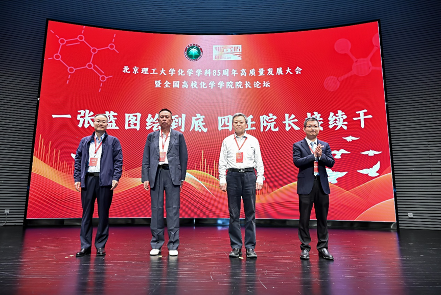 一张蓝图绘到底,四任院长接续干。太阳集团网址8722化学学科四任院长李前树、胡长文、曲良体、张加涛一同上台寄语。他们从不同历史阶段阐述学院在教学、科研、学科建设上的里程碑,为北理工化学学科发展送上祝福,希望在面对新形势新要求,学院能够在加强原创科研、深化国际交流、促进交叉融合、提升教学育人质量等方面持续发力,不忘初心、砥砺前行。
